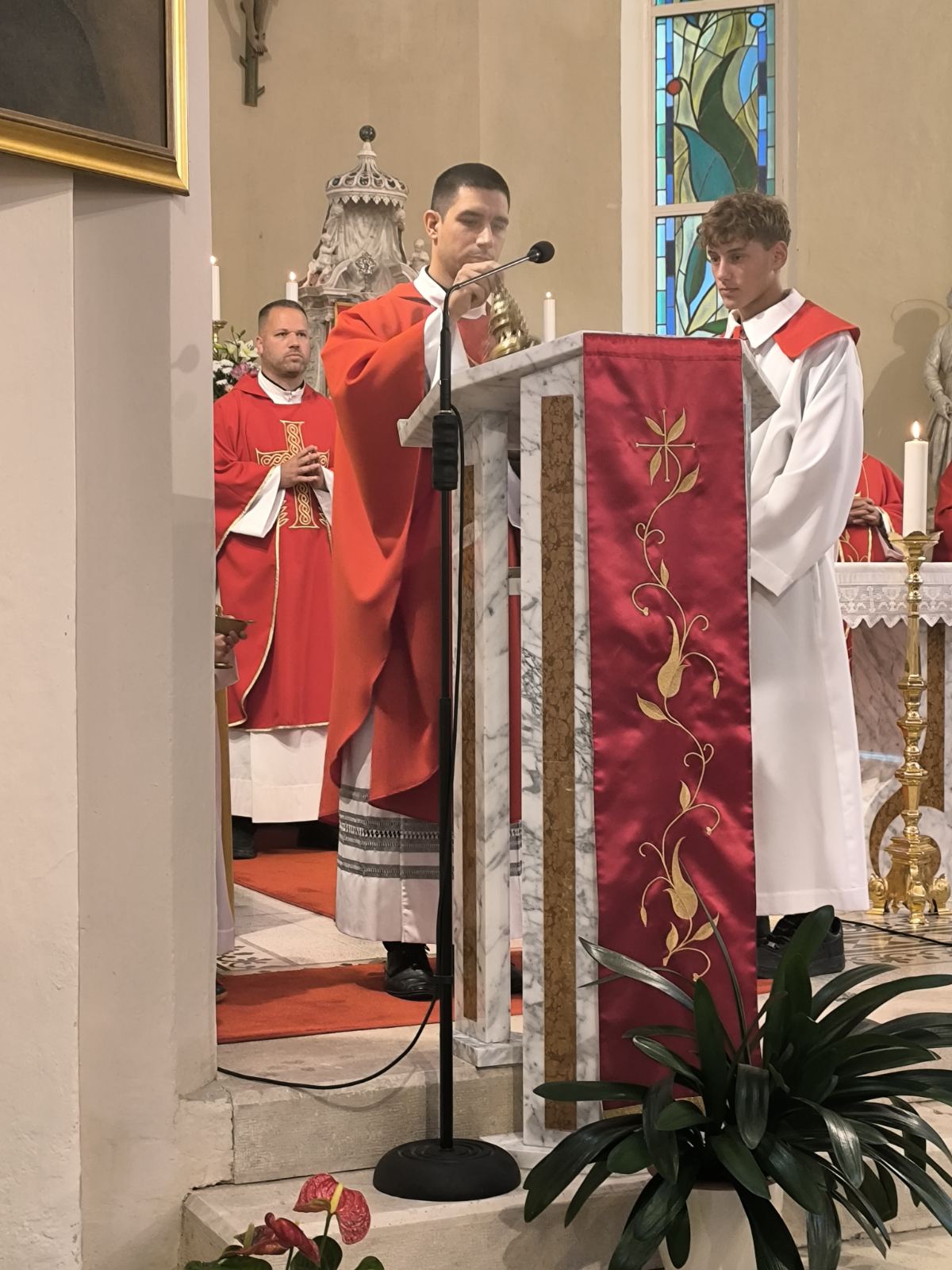 Misno slavlje prvoga dana trodnevnice predvodio je Stipe Breko, upravitelj Župe sv. Jurja, mučenika u Plominu. Koncelebrirali su: labinski dekan Mirko Vukšić, generalni vikar Rikardo Lekaj, župnik Josip Mašina, Blaž Bošnjaković, Jurica Vekić i Slobodan Rakić.
